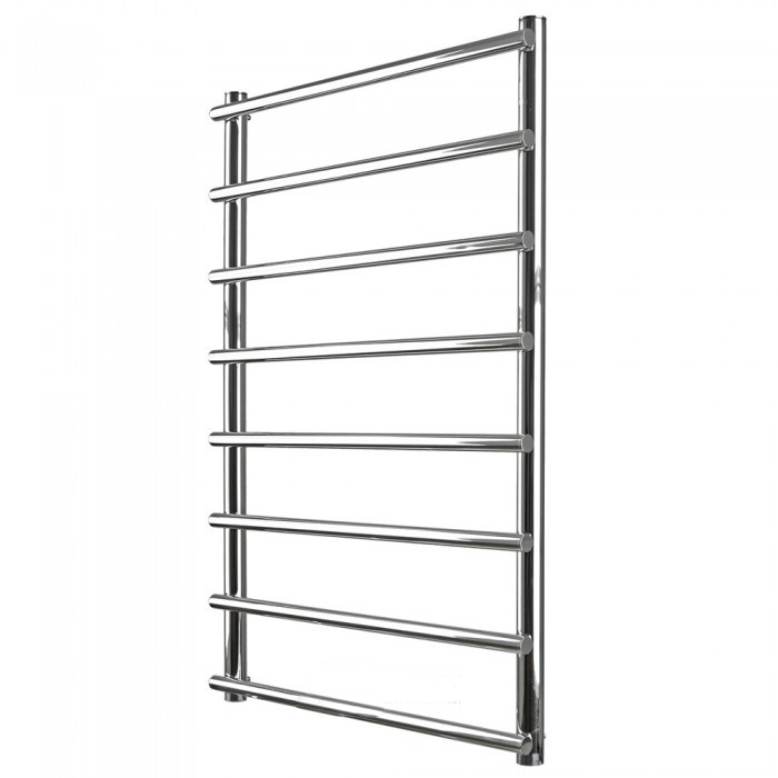 Полотенцесушитель из коллекции Турин выполнен в виде классической лесенки. Конструкция состоит из 8 прямых ребер, расположенных на одинаковом расстоянии друг от друга. Такой полотенцесушитель быстро высушит одежду, создаст комфортную температуру в помещении, избавит от запотевших зеркал и грибка на стенах.