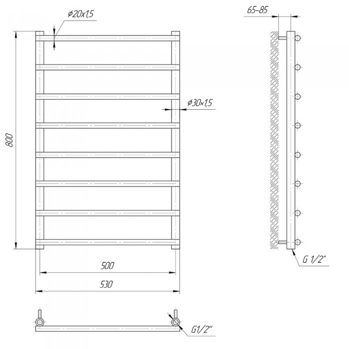 Водяной полотенцесушитель Mario Турин 800x530/500 мм нержавеющая сталь