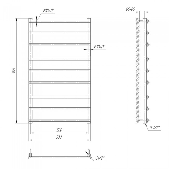 Водяной полотенцесушитель Mario Турин 900x530/500 мм нержавеющая сталь 4820111353019