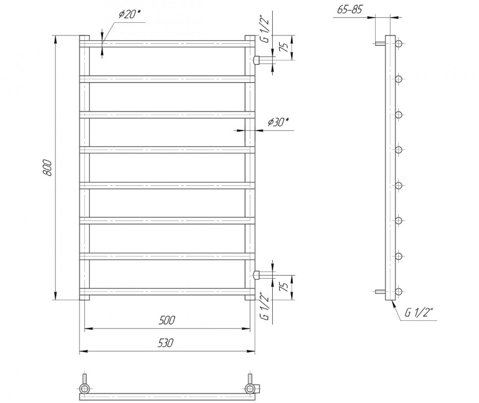 Водяной полотенцесушитель Mario Турин Б/П 1/2" 800x550/700 мм
