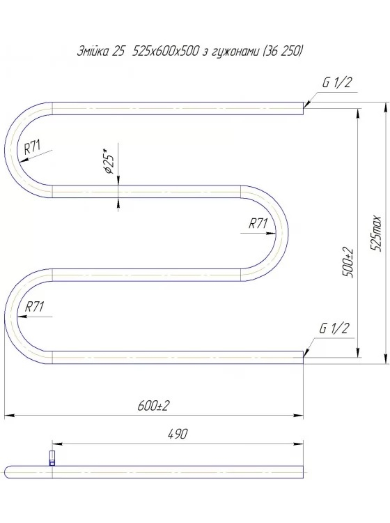 Водяной полотенцесушитель Mario Змейка ∅25 525x600/500 хром