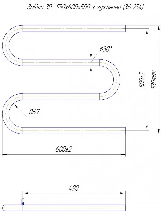 Водяной полотенцесушитель Mario Змейка ∅30 530x600/500 хром
