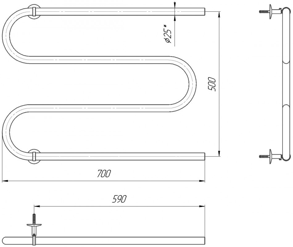 Водяной полотенцесушитель Mario Змейка 25 525х700/500 мм