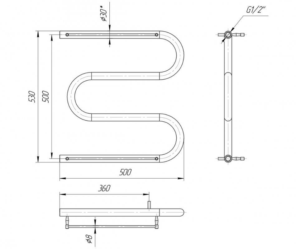 Водяной полотенцесушитель Mario Змейка 30 530х500/500 мм 4820111350582