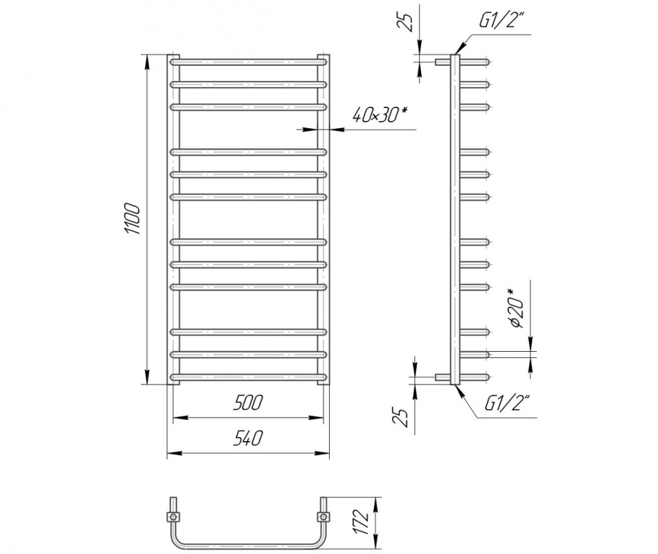 Водяной полотенцесушитель Премиум Стандарт 1100x540x500 4820111352074