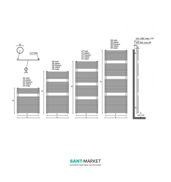 Полотенцесушители укомплектованы набором крепежных деталей для закрепления на стене и выпускным клапаном.