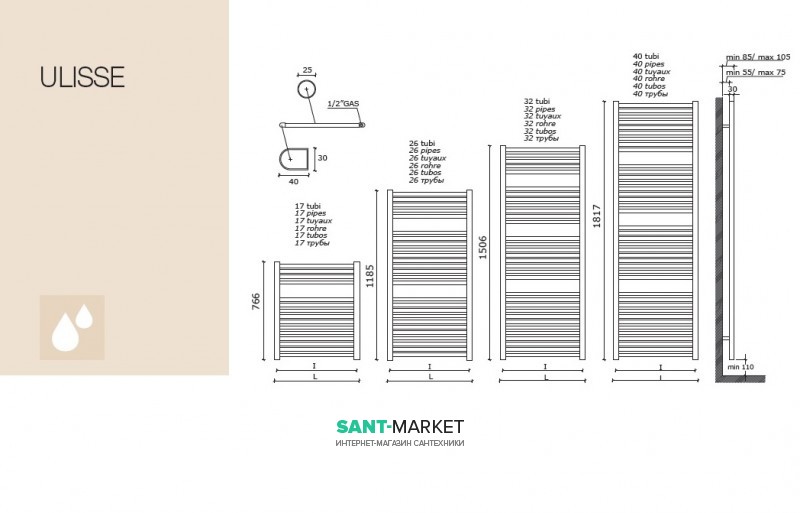 Выходная мощность указана для окрашенных моделей. Хромированные и матовые модели имеют более низкую теплоотдачу (примерно, на 25% меньше).