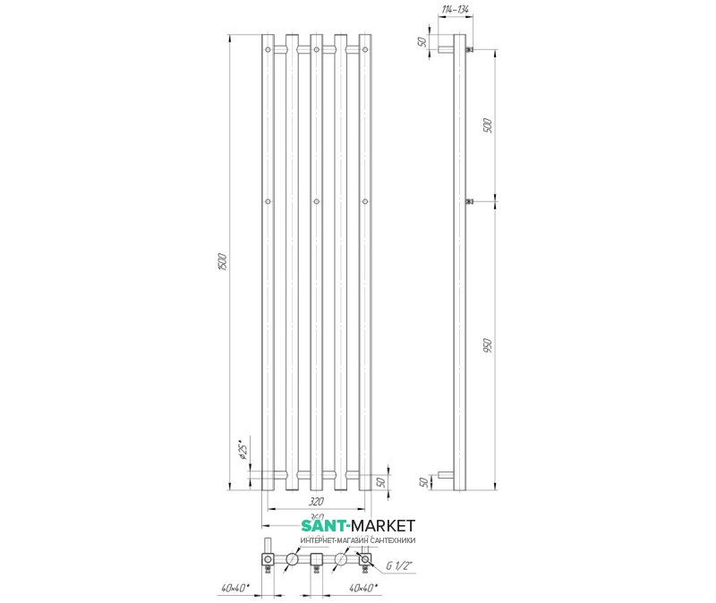 Водяной полотенцесушитель Битуб 1500x360 с межосевым расстоянием для подключения 320мм, диаметр подключения G 1/2'' состоит из 5 ребер. Дизайн-радиатор Битуб производственного предприятия Mario изготовлен из нержавеющей стали АІSI 304 может быть оборудован электрическим теном.