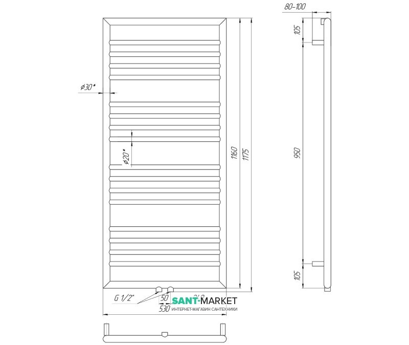 - Раздел: Водяные (проточные) полотенцесушители