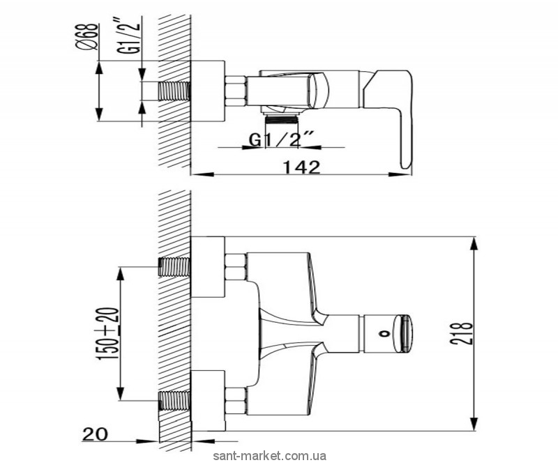 Смеситель для душа настенный однорычажный Volle коллекция Fiesta хром 15153100