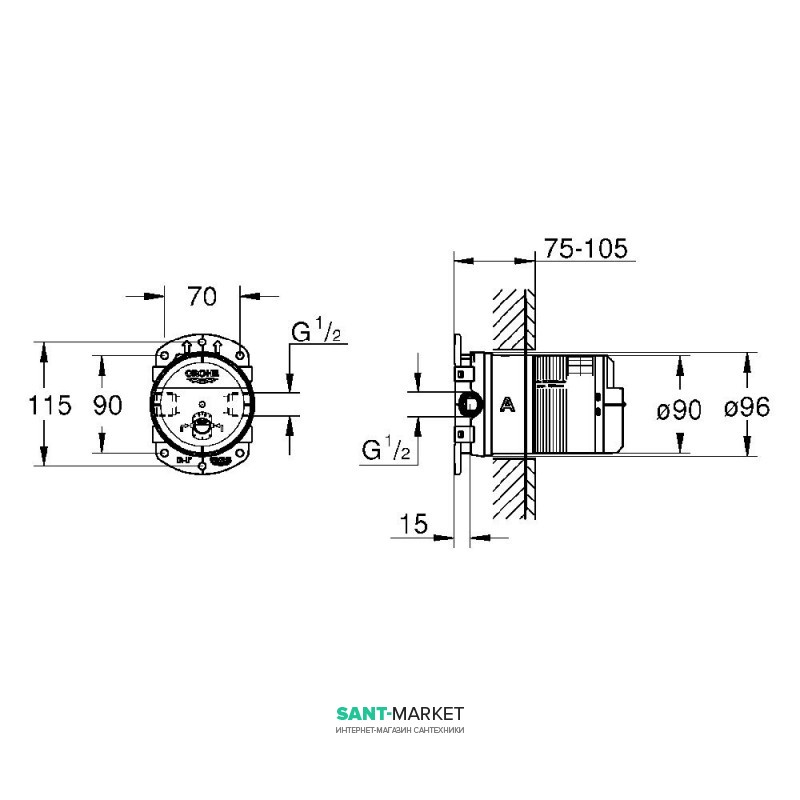 Встраиваемая часть Grohe для верхнего душа с душевым кронштейном 26484000