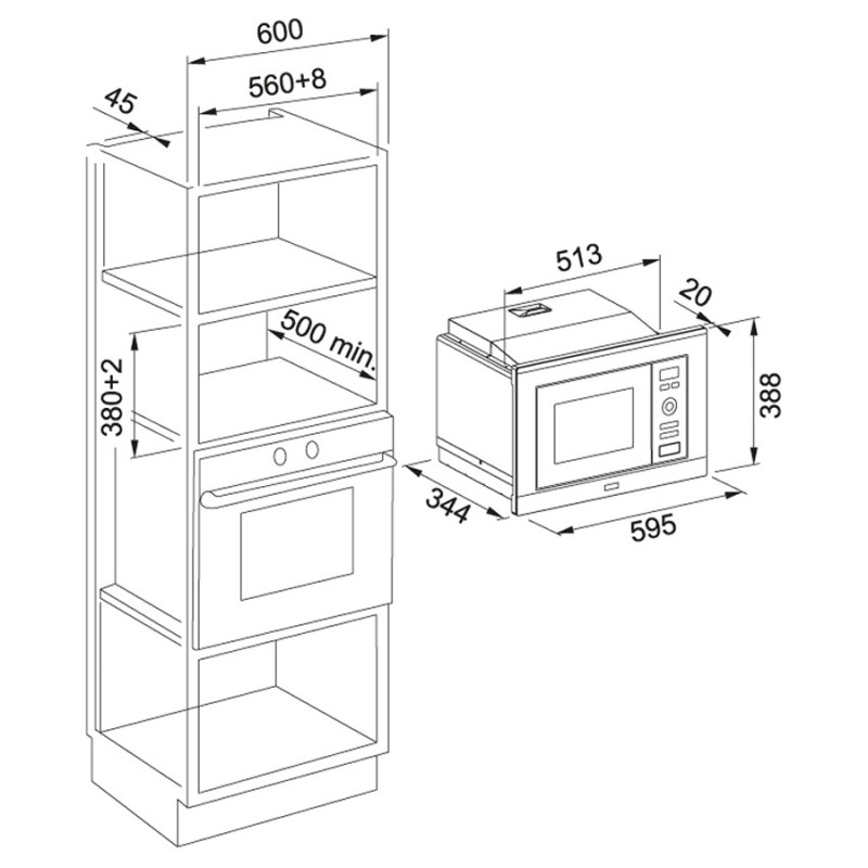 1) Встраиваемая микроволновая печь Franke Smart FMW 20 SMP G XS нержавеющая сталь/черный