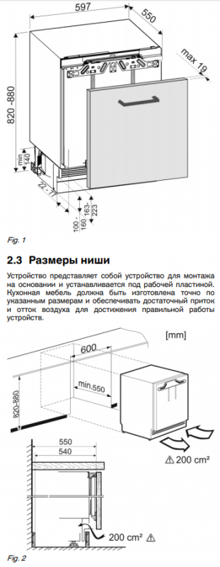 Высоту и глубину встраиваемой под столешницу техники можно подогнать под параметры ниши для встраивания при помощи специальной цокольной панели Vario, при этом диапазон регулировки каждой из четырех ножек составляет 50 мм. Кроме этого, при установке в кухонный гарнитур вентиляционная решетка может быть сдвинута на 55 мм.