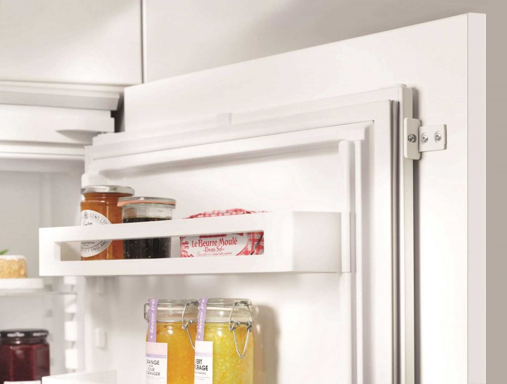 Холодильные камеры можно без труда разместить за фасадом кухонного гарнитура, благодаря чему они будут прекрасно гармонировать с Вашим кухонным гарнитуром. При этом необходимо соблюдать технологию монтажа встраиваемой техники. Монтаж фиксированной дверцы: мебельная дверца и дверца прибора крепятся друг к другу, при этом мебельная дверца крепиться непосредственно на дверцу холодильника. Монтаж буксируемой дверцы: Мебельная дверца закреплена непосредственно на высоком шкафу и соединяется с дверцей холодильника при помощи скользящей шины. При открывании и закрывании мебельная дверца скользит вдоль шины.