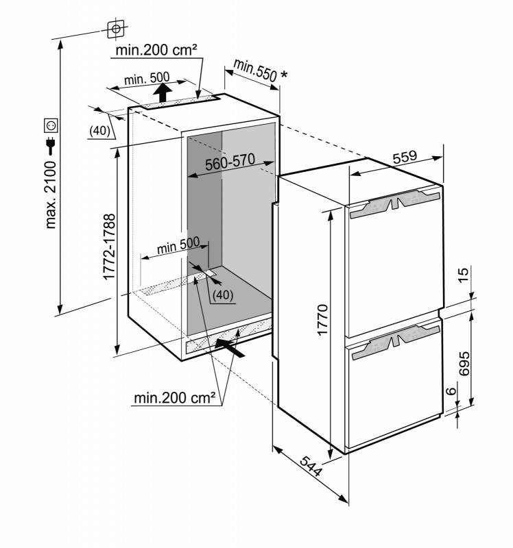 Габариты ниши Высота/Ширина/Глубина 177,2 - 178,8 / 56 - 57 / 55,0 см