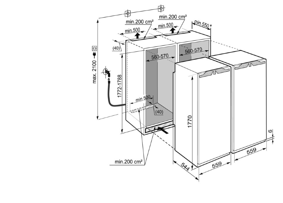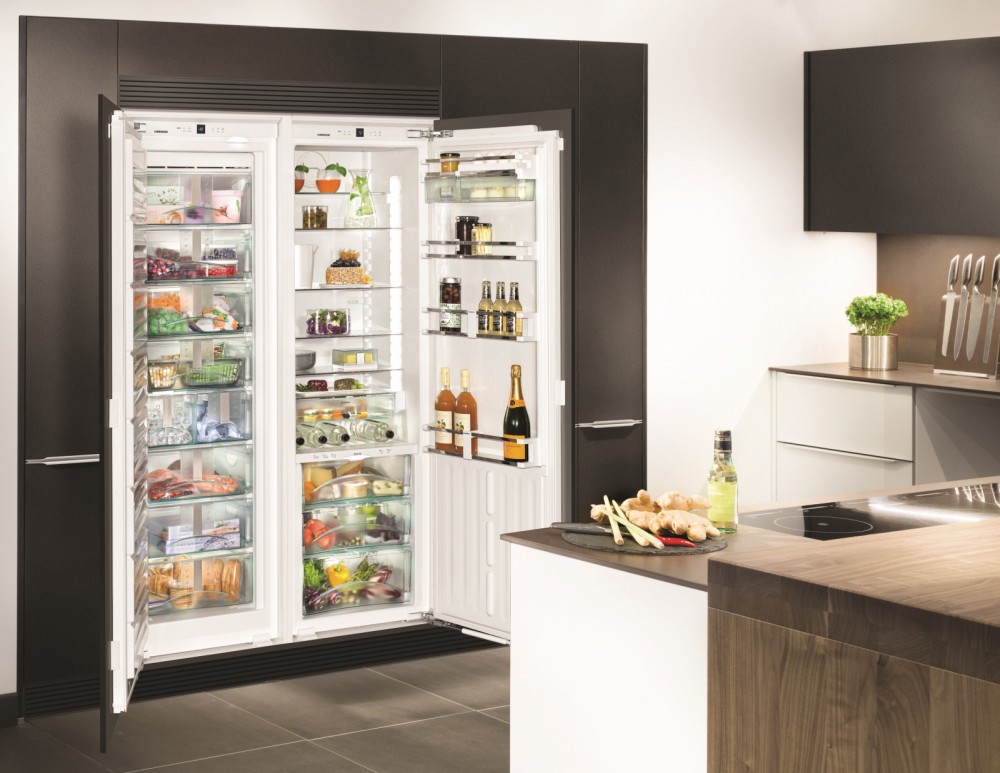 Холодильные камеры Liebherr можно установить за фасадом кухонного гарнитура. Встраиваемые приборы годятся для установки в большинство мебельных ниш. Важно сохранять технологию монтажа встраиваемой техники. Сборка фиксированной дверцы: дверца прибора и мебельная дверца крепятся друг к другу, при этом мебельная дверца фиксируется на дверцу холодильника. Сборка буксируемой дверцы: мебельная дверца зафиксирована на высоком шкафу и крепится с дверцей холодильника при помощи скользящей шины.