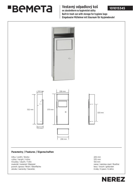 Встраиваемый контейнер для мусора Bemeta Hotel с полочкой для хранения нержавеющая сталь матовая 101015345