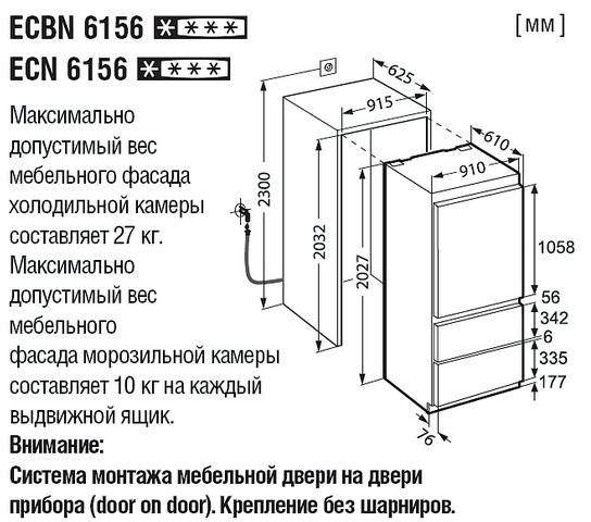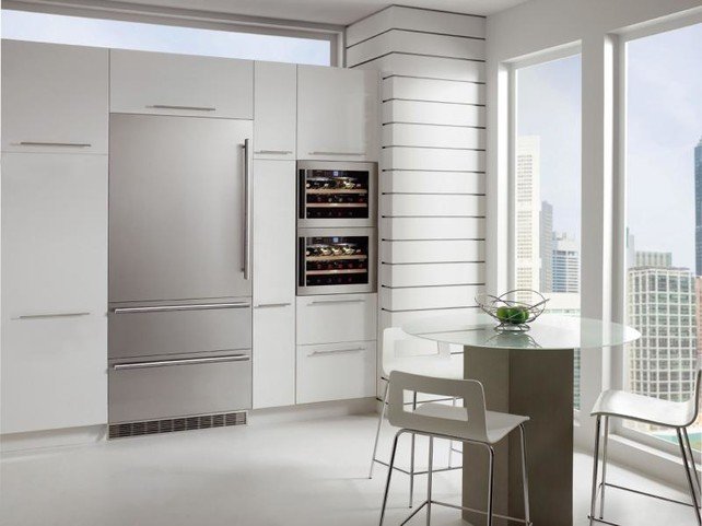 Холодильные камеры можно без труда разместить за фасадом кухонного гарнитура, благодаря чему они будут прекрасно гармонировать с Вашим кухонным гарнитуром. При этом необходимо соблюдать технологию монтажа встраиваемой техники. Монтаж фиксированной дверцы: мебельная дверца и дверца прибора крепятся друг к другу, при этом мебельная дверца крепиться непосредственно на дверцу холодильника. Монтаж буксируемой дверцы: Мебельная дверца закреплена непосредственно на высоком шкафу и соединяется с дверцей холодильника при помощи скользящей шины. При открывании и закрывании мебельная дверца скользит вдоль шины.