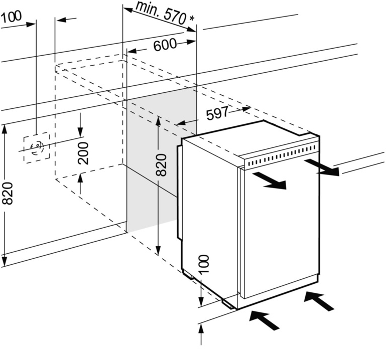 Габариты ниши Высота/Ширина/Глубина 82 / 60 / 57,0 см
