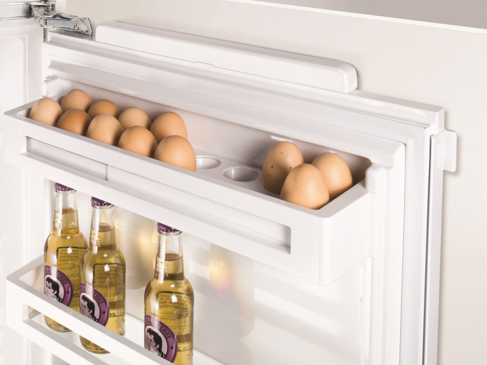 Раздвижная конструкция контейнера для яиц позволяет хранить в нем до 20 куриных или 28 перепелиных яиц. Чтобы яйца хранились дольше, рекомендуем ставить их в контейнер острым концом вниз или поместить контейнер в секцию BioFresh.