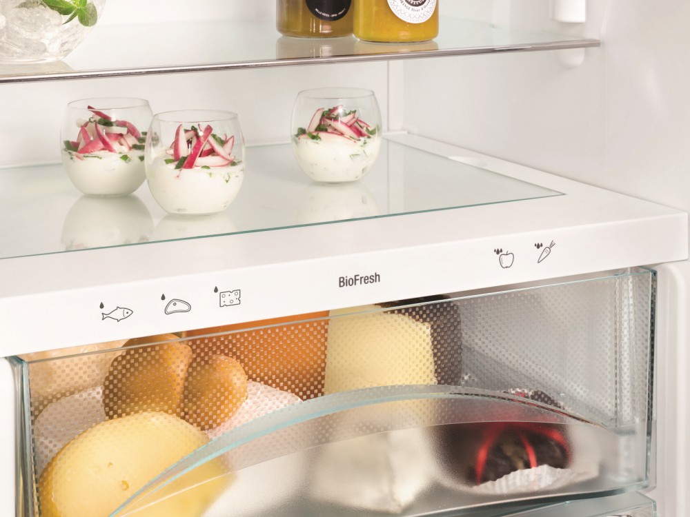 Чем свежее продукты питания, тем выше их ценность для полноценного, здорового питания. Контейнеры BioFresh на телескопических шинах гарантируют оптимальные условия хранения и сохранят свежесть продуктов. При температуре чуть выше 0°C и идеальной влажности воздуха овощи и фрукты, мясо, рыба и молочные продукты в три раза дольше сохраняют содержащиеся в них витамины, тонкий аромат, а также аппетитный внешний вид, по сравнению с хранением в обычной холодильной камере.