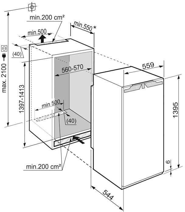 Холодильные камеры можно без труда разместить за фасадом кухонного гарнитура, благодаря чему они будут прекрасно гармонировать с Вашим кухонным гарнитуром. При этом необходимо соблюдать технологию монтажа встраиваемой техники. Монтаж фиксированной дверцы: мебельная дверца и дверца прибора крепятся друг к другу, при этом мебельная дверца крепиться непосредственно на дверцу холодильника. Монтаж буксируемой дверцы: Мебельная дверца закреплена непосредственно на высоком шкафу и соединяется с дверцей холодильника при помощи скользящей шины. При открывании и закрывании мебельная дверца скользит вдоль шины.