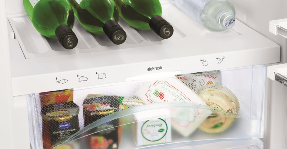 Чем свежее продукты питания, тем выше их ценность для полноценного, здорового питания. Контейнеры BioFresh на телескопических шинах гарантируют оптимальные условия хранения и сохранят свежесть продуктов. При температуре чуть выше 0°C и идеальной влажности воздуха овощи и фрукты, мясо, рыба и молочные продукты в три раза дольше сохраняют содержащиеся в них витамины, тонкий аромат, а также аппетитный внешний вид, по сравнению с хранением в обычной холодильной камере.