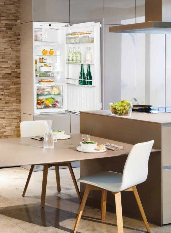 Холодильные камеры можно без труда разместить за фасадом кухонного гарнитура, благодаря чему они будут прекрасно гармонировать с Вашим кухонным гарнитуром. При этом необходимо соблюдать технологию монтажа встраиваемой техники. Монтаж фиксированной дверцы: мебельная дверца и дверца прибора крепятся друг к другу, при этом мебельная дверца крепиться непосредственно на дверцу холодильника. Монтаж буксируемой дверцы: Мебельная дверца закреплена непосредственно на высоком шкафу и соединяется с дверцей холодильника при помощи скользящей шины. При открывании и закрывании мебельная дверца скользит вдоль шины.