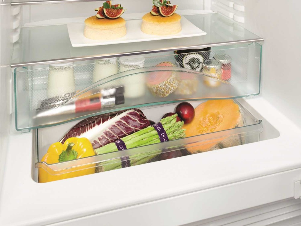 В особенно глубокой полке, которой оснащены модели UIK, продукты можно хранить в два ряда. Так, например, высокие бутылки можно расположить в заднем ряду полки, а консервы или стаканчики с йогуртом в переднем. Оба ряда разделены между собой сплошной прочной перегородкой. При этом бутылки могут фиксироваться при помощи передвижного держателя.