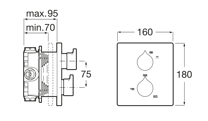 1) Встраиваемый термостатический смеситель для ванны и душа (внешняя часть) Roca Insignia