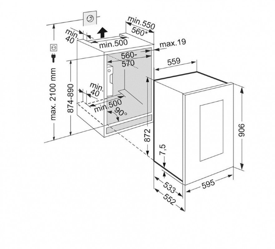 Габариты ниши Высота/Ширина/Глубина 87,4 - 89 / 56 - 57 / 55,0 см