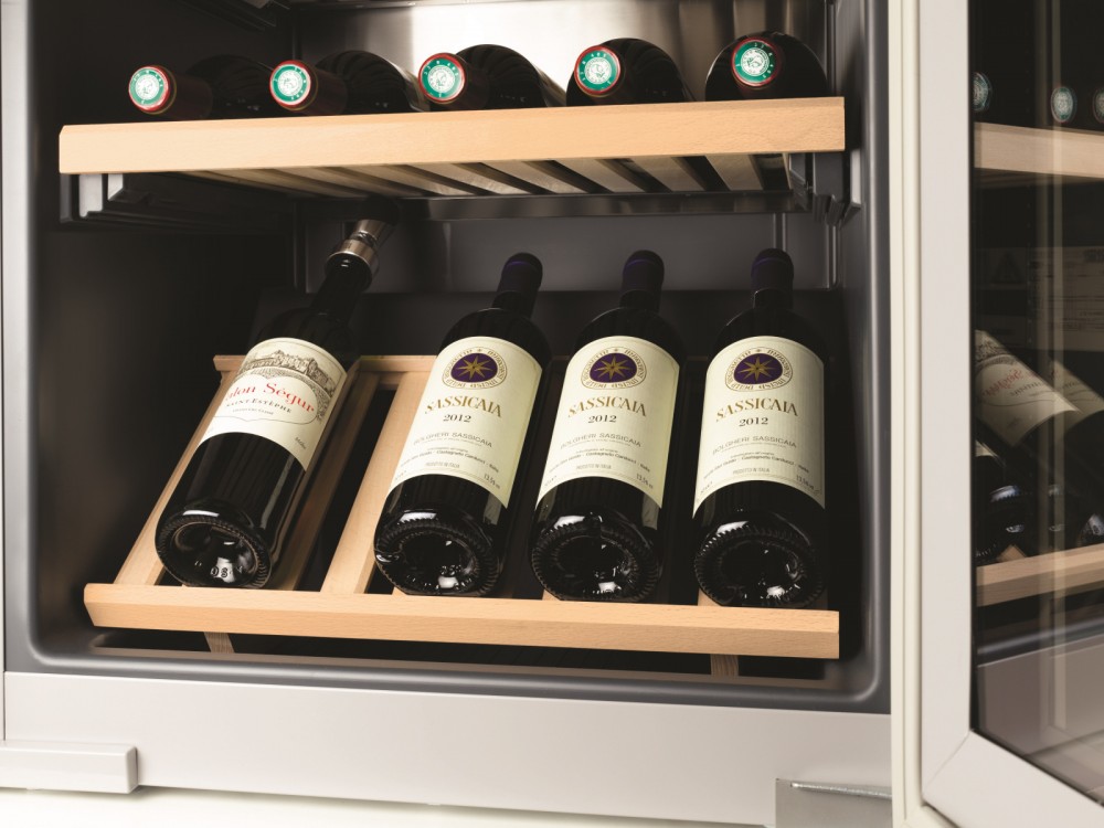 Презентационная полка предназначена для демонстрации особых сортов вин или оптимального хранения уже открытых бутылок. На ней можно разместить до 6 бутылок. Позади и рядом с презентационной полкой бутылки могут храниться в горизонтальном положении.