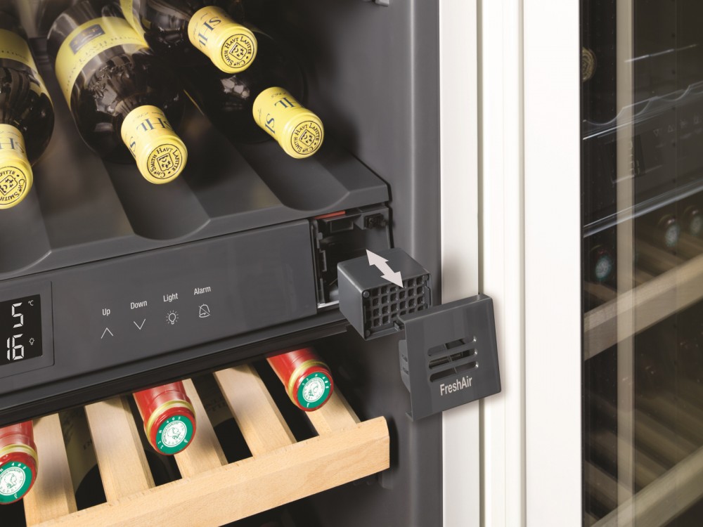 Посторонние запахи при их долгом воздействии могут неблагоприятно отразиться на качестве хранимого вина. В винных шкафах оптимальное качество воздуха обеспечивают сменные фильтры из активированного угля FreshAir.