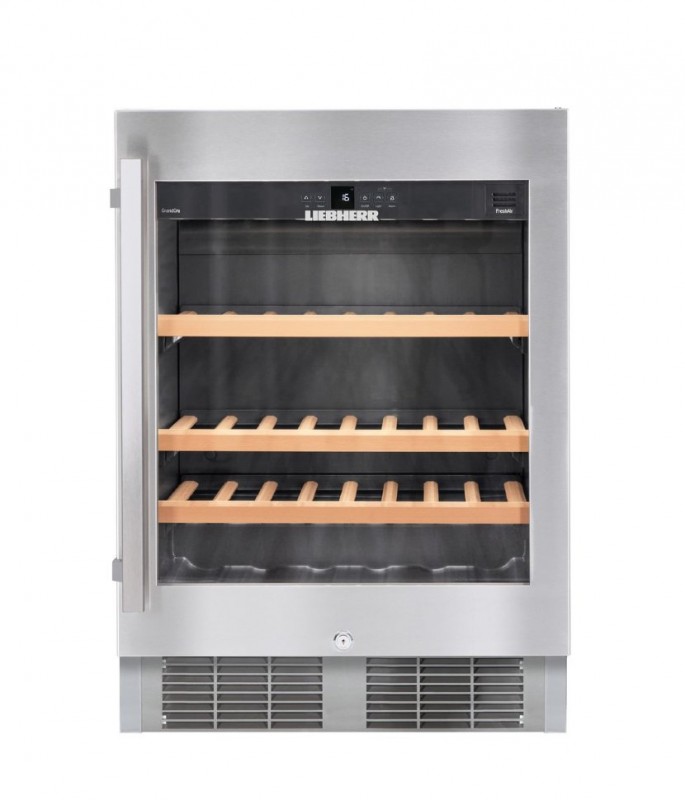 Встраиваемый винный шкаф Liebherr UWKes 1752 GrandCru – монотемпературный шкаф, встраиваемый под столешницу, с одной температурной зоной. Интегрированное в корпус UWKes 1752 LED-освещение позволяет успешно презентовать винную коллекцию. Воздушный фильтр на основе активированного угля устраняет вредные примеси из воздуха. При необходимости его легко заменить.