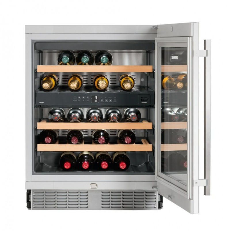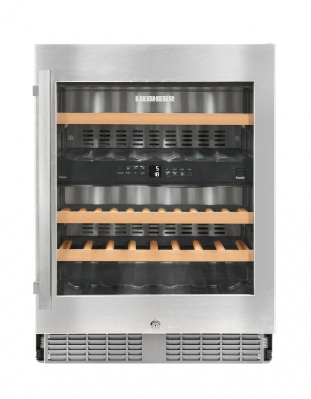 Встраиваемый винный шкаф Liebherr UWTes 1672 Vinidor – мультитемпературный шкаф, встраиваемый под столешницу. Встроенное в корпус UWTes 1672 светодиодное освещение позволяет успешно презентовать винную коллекцию. Дверь с автоматическим доводчиком SoftSystem. Три полки из натурального дерева превосходно подходят для хранения вин и подавляют любую вибрацию. Модель, с постоянно поддерживаемой влажностью 50 %, вмещает 34 бутылок Бордо 0,75 l.