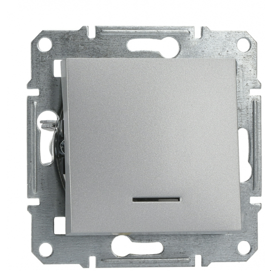 Выключатель Schneider Electric Asfora 1-клавишный с подсветкой самозажимный алюминий