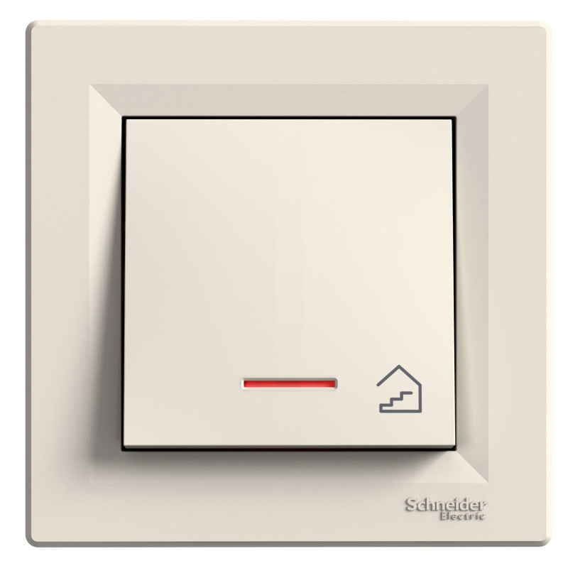 Выключатель Schneider Electric Asfora кнопочный с подсветкой и символом Лестница самозажимный крем