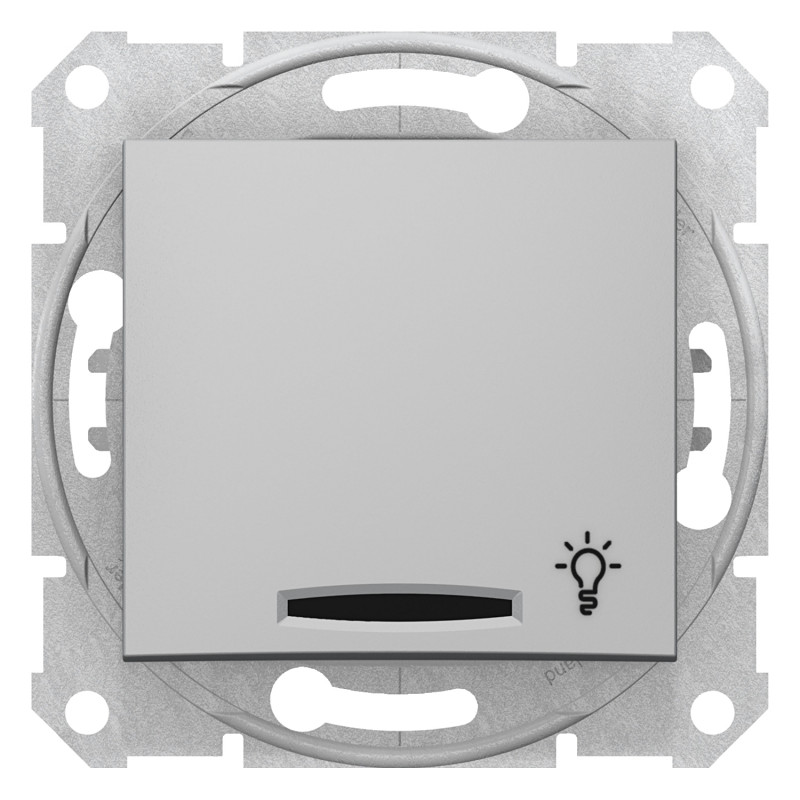 Выключатель Schneider Electric Sedna кнопочный с символом Свет и подсветкой алюминий SDN1800160