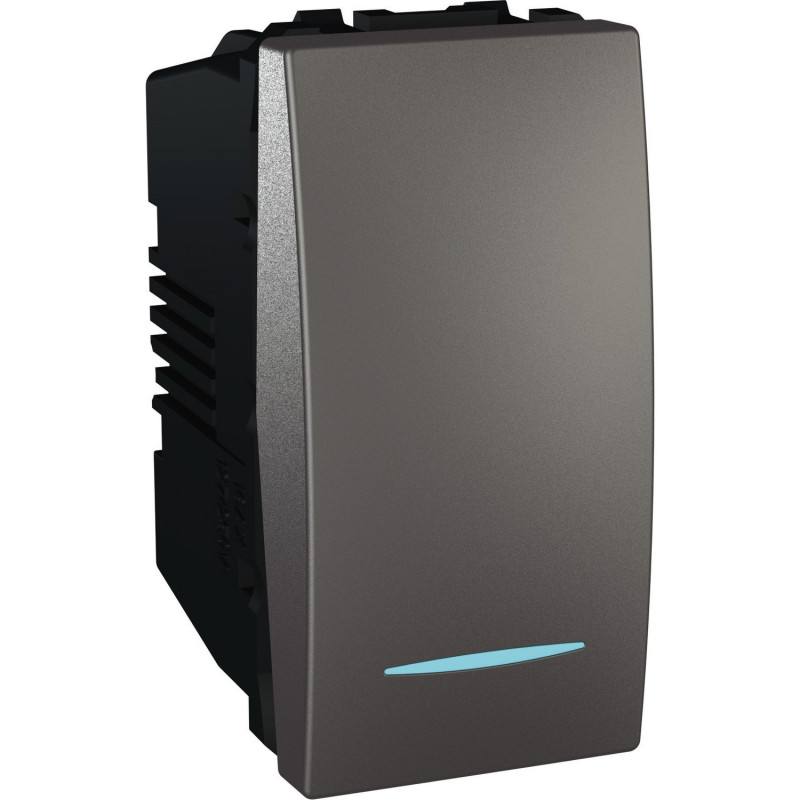 1) Выключатель Schneider Electric Unica 1-клавишный 16А схема 1 с подсветкой графит