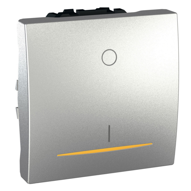 1) Выключатель Schneider Electric Unica 2-полюсный схема 2 с индикацией алюминий