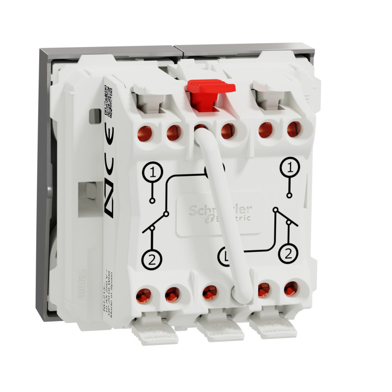 1) Выключатель Schneider Electric Unica New 2-клавишный 2 х схема 6 2 модуля алюминий