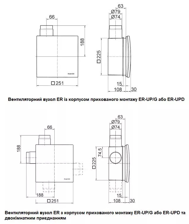 - Вентилятор с крышкой и фильтром G2 для установки в корпус скрытого монтажа.