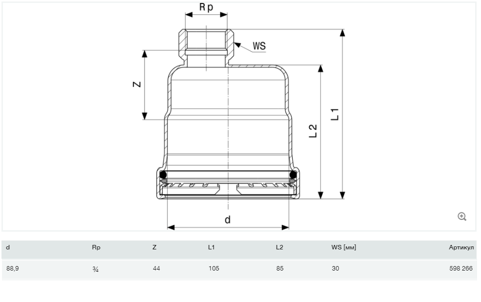 Заглушка Viega Prestabo XL 1156XL 88.9хRp3/4 нелегированная сталь 598266