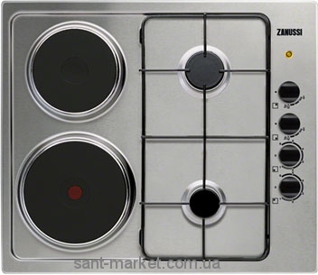 Комбинированная варочная поверхность. Макс. мощность подключения/газа: 3000 Вт. 4 зоны нагрева. Газ-контроль. Поворотные регуляторы мощности нагрева. Кнопка электроподжига. Эмалированный держатель для посуды. Габариты (ШхГ): 58х50 см. Цвет: нерж. сталь.