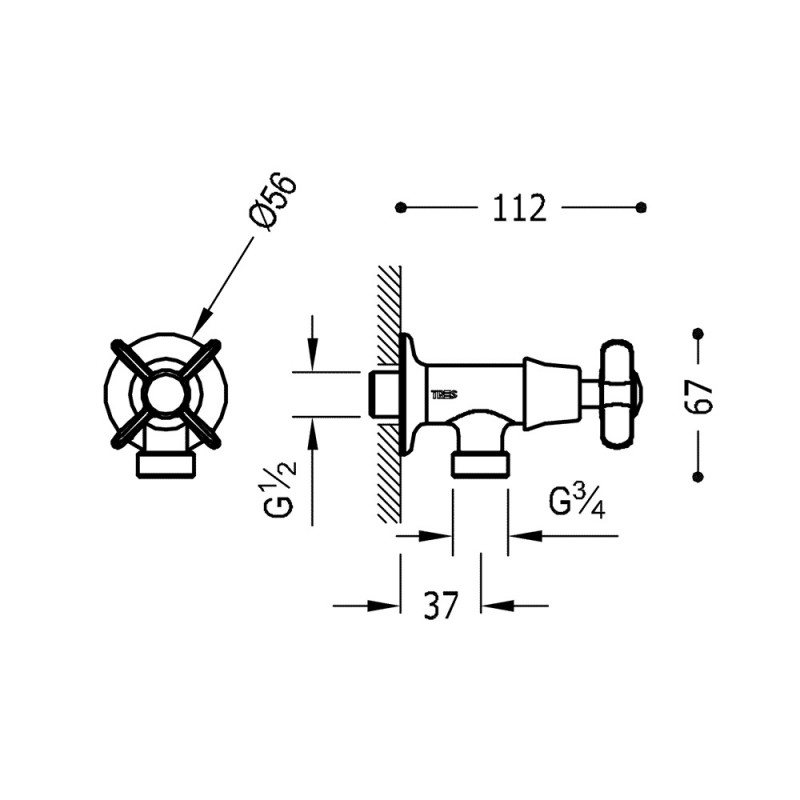 Запорный вентиль для стиральной машины Tres Tres-Сlasic состаренная латунь матовая