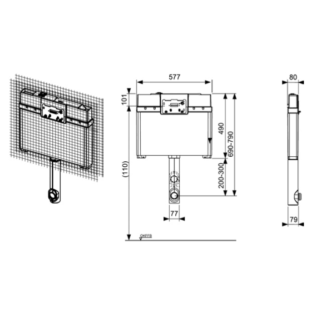 Предназначен для напольного унитаза, с арматурной сеткой, высота 1100 мм.