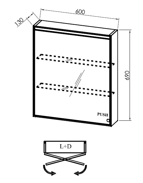 Открывание двери нажатием. Функциональность служит вашему удобству. Дверь открывается нажатием, без дополнительных ручек, что придает ванной комнате современный и элегантный вид.