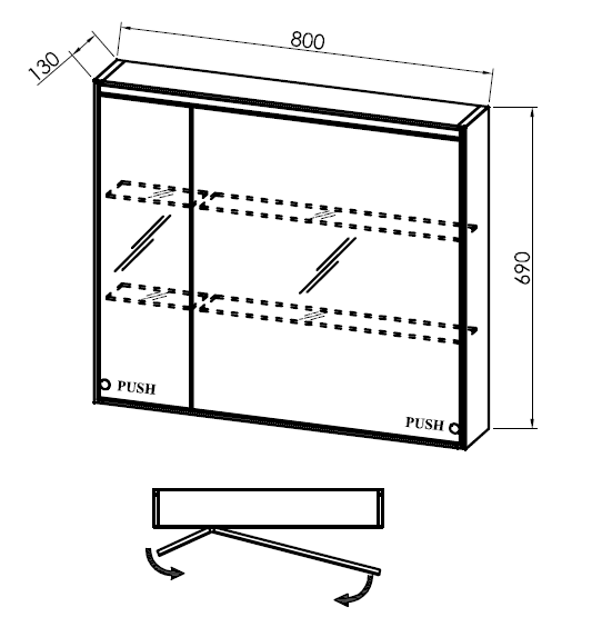 Открывание двери нажатием. Функциональность служит вашему удобству. Дверь открывается нажатием, без дополнительных ручек, что придает ванной комнате современный и элегантный вид.