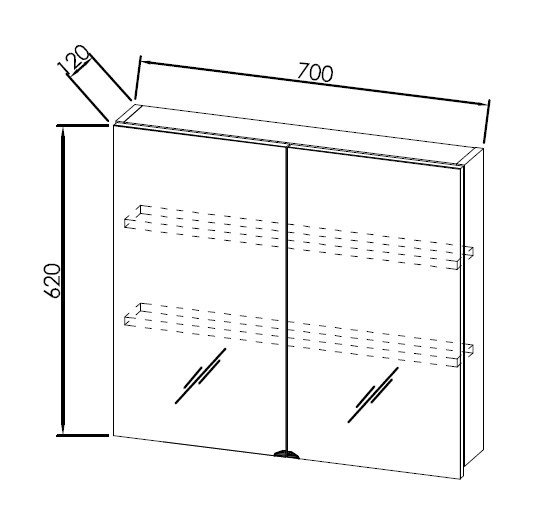 Комплектация - две зеркальные дверцы, две полки