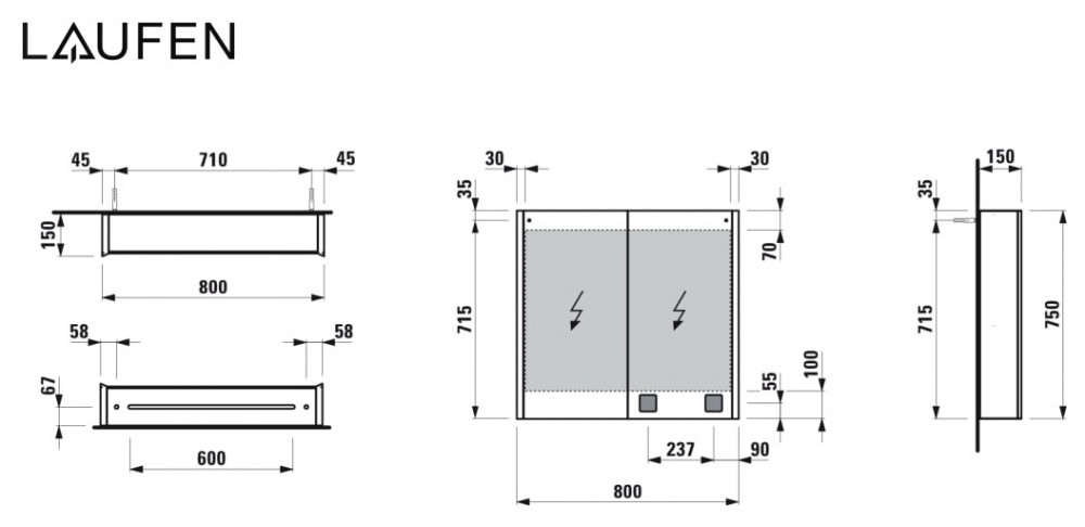 Зеркальный шкаф Laufen Frame 25 80х15х75 см с сенсорным выключателем алюминий H4085039001441